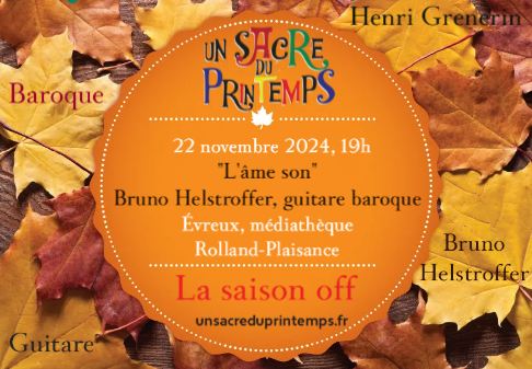 Bruno Helstroffer, auteur du CD « L’Âme son », consacré à de la musique pour un instrument oublié, la guitare baroque, propose un concert à la médiathèque pour faire découvrir et transmettre son goût pour cet instrument.