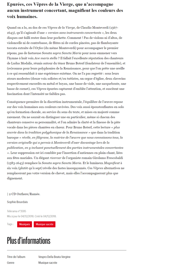 LES PREMIERS COMMENTAIRES ET EMISSIONS RADIOPHONIQUES ARRIVENT! FFFF de Télérama, **** de Classica, Disque du mois de janvier du BBC music Magazine